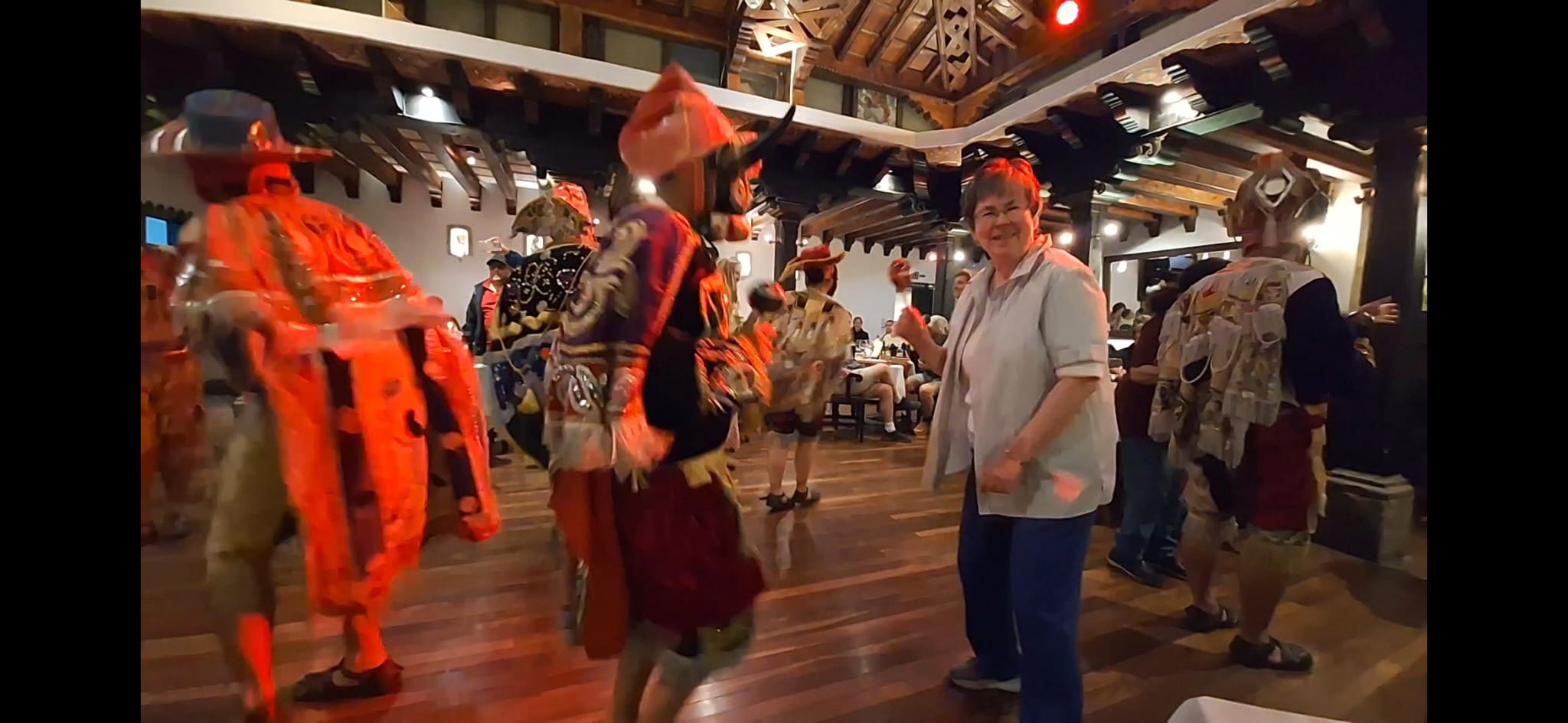 Posada de Don Rodrigo restaurant offered live Marimba music with dancers in costumes performing the Baile de los Moros, a folk dance. As I ate, one of the dancers wearing a bull mask offered me a maraca, an invitation to dance with him. After I did, other guests got up and danced.