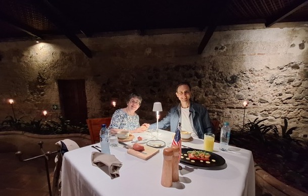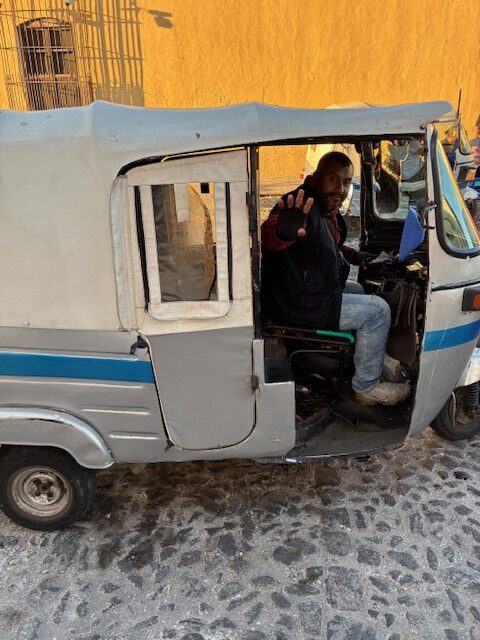 My nephew Andy invited me to visit him in Guatemala so a member of his family could meet his girlfriend, who isn’t able to enter the USA. Last week he treated me to a vacation jam-packed with activities that left me exhausted but full of wonderful memories. Seeing this country firsthand was an eyeopener. I was surprised how modern certain features were, like the airport and a huge mall. Andy lives in a gated community where security guards patrol day and night.