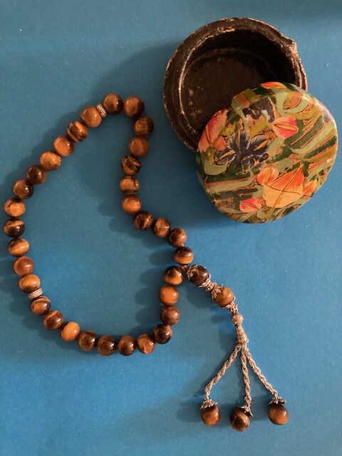 Muslim prayer beads have 99 beads, for the 99 names of God. When I was in Arabia, I purchased a smaller one. It has 33 beads, three sets of 11. The sets represent “Glory be to Allah,” “Praise be to Allah,” and “Allah is the greatest.”