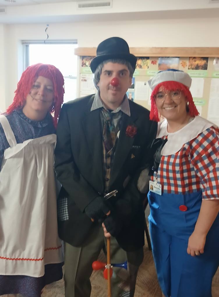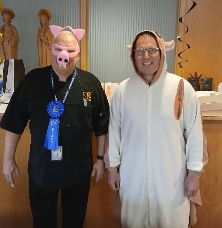 On Halloween, Sisters and employees had a party in the afternoon. Employees came in costume and were judged. The winner was our cook Phil Wetzel, who came as a pig. He provided the photos here.
